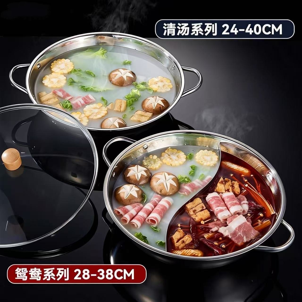 加厚带盖不锈钢火锅锅具汤锅家用火锅盆卡式炉电磁炉专用鸳鸯锅
