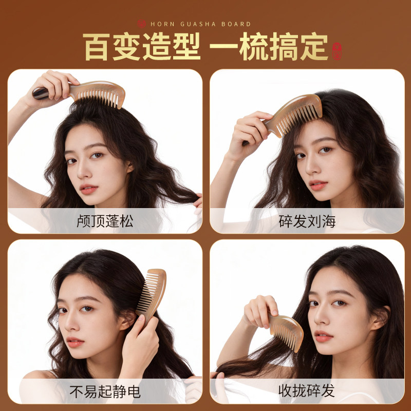 天然宽齿牛角梳子家用头部经络按摩正品宗女士专用顺发官方旗舰店