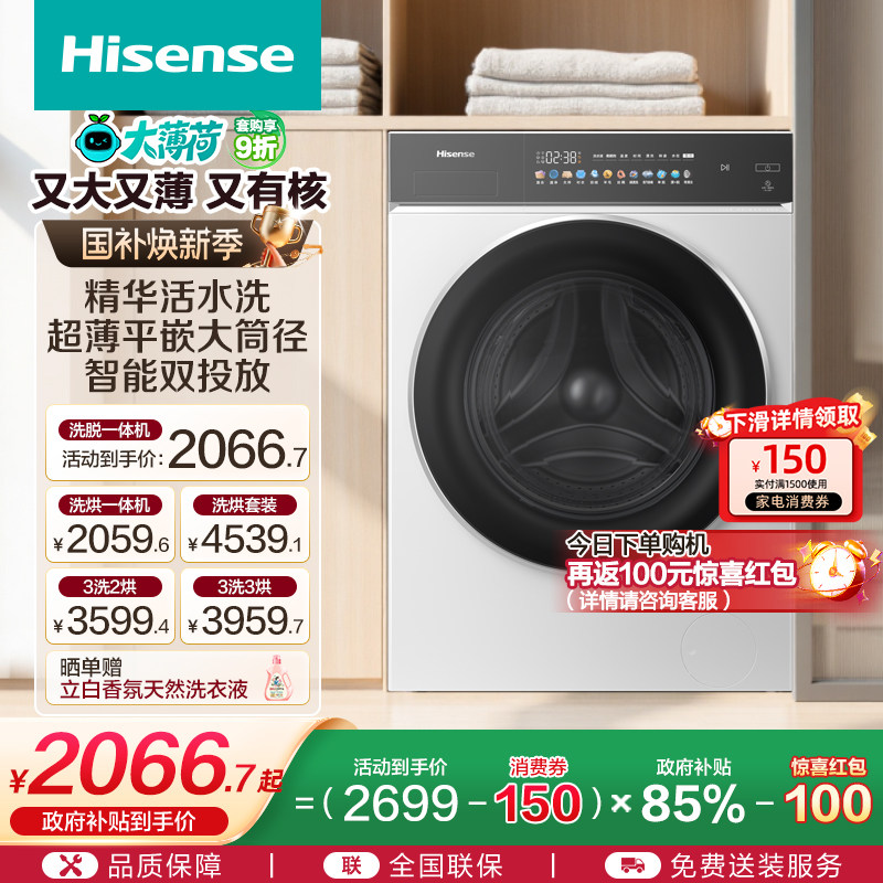 海信大薄荷10公斤滚筒洗衣机全自动家用变频除菌螨洗脱一体机E3Q2