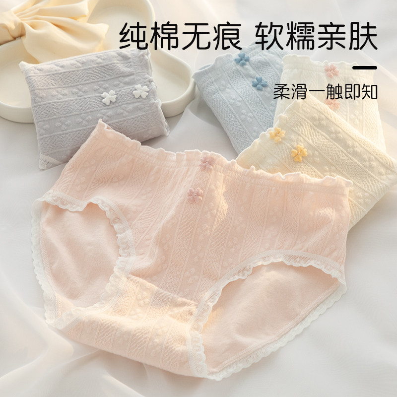 内裤女生纯棉抗菌100%全棉裆2023新款日系无痕透气女士中腰短裤