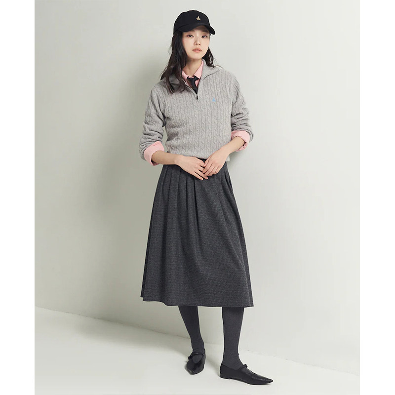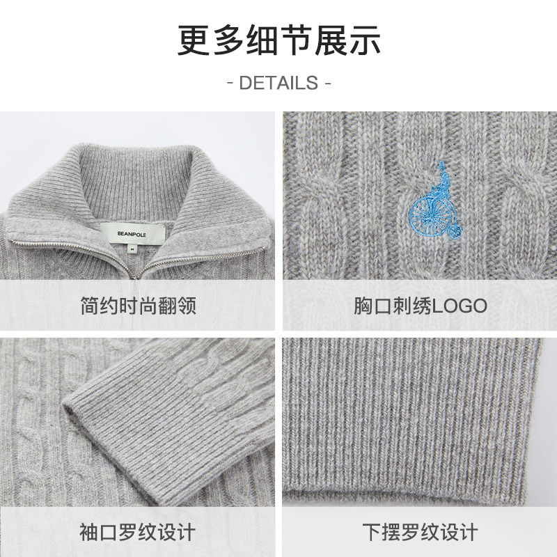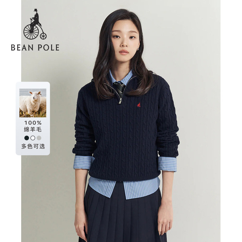 【新品】100%绵羊毛BEANPOLE滨波秋冬女慵懒感半拉链麻花套头毛衫