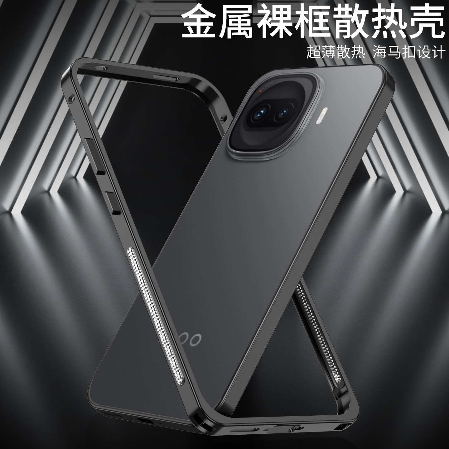 金属散热单边框适用vivoIQOOZ11Turbo手机壳海马扣铝合金新款iqooz11turbo防摔保护套男女简约超薄高级感裸机