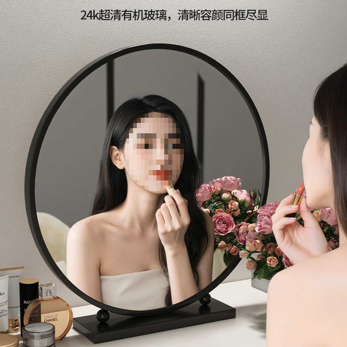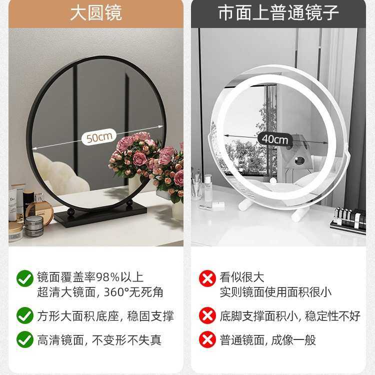轻奢化妆镜圆形智能梳妆镜卧室台式桌面简约铁艺梳妆台大镜子