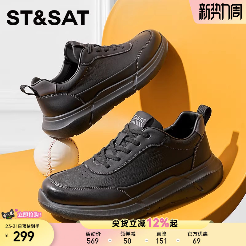 星期六男鞋秋季鞋子公务通勤鞋商务休闲皮鞋男士头层牛皮运动皮鞋