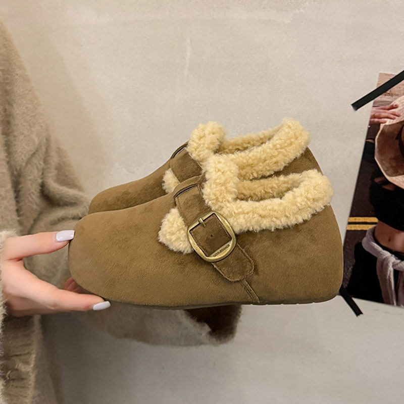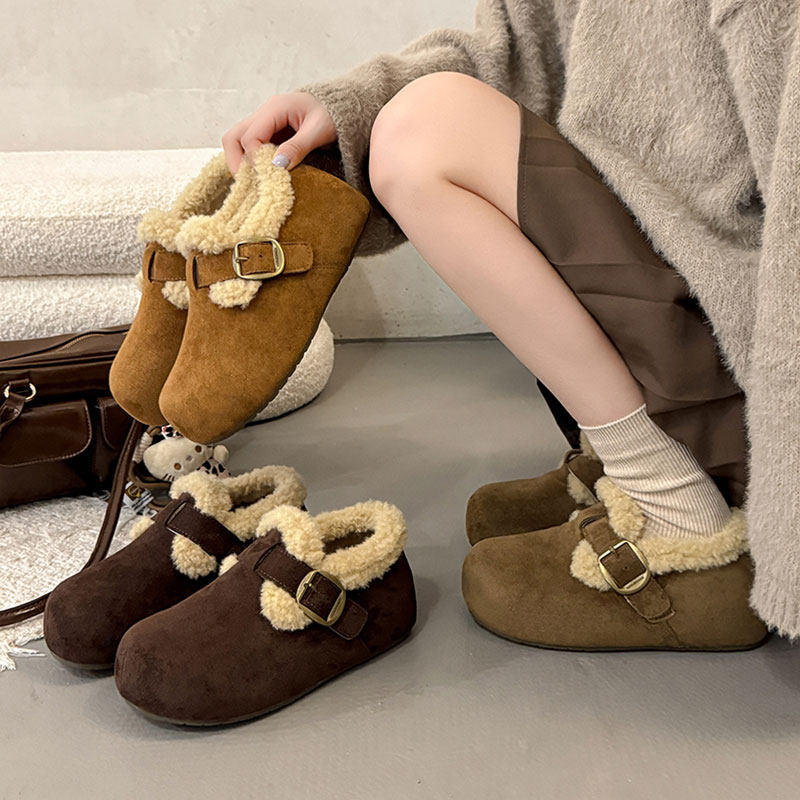 TATAFOCUS~加绒毛毛鞋韩版圆头皮带扣2025冬季新款勃肯鞋女35-28