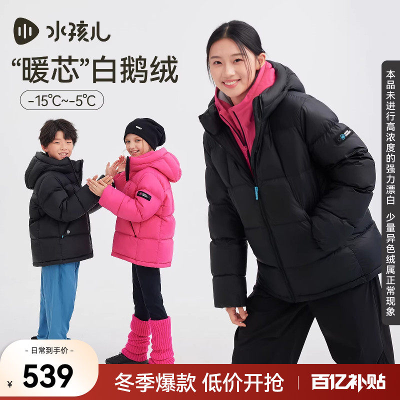 [鹅绒服]水孩儿童装羽绒外套男女童25冬季新品青少年亲子厚面包服