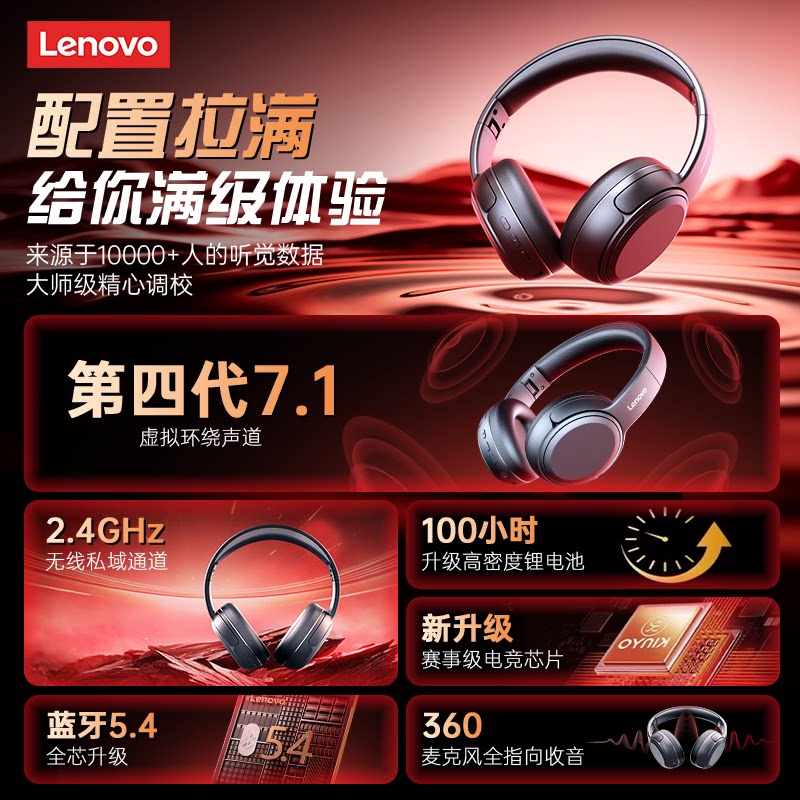 联想头戴式耳机2026新款无线蓝牙电脑耳麦游戏电竞专用三角洲吃鸡