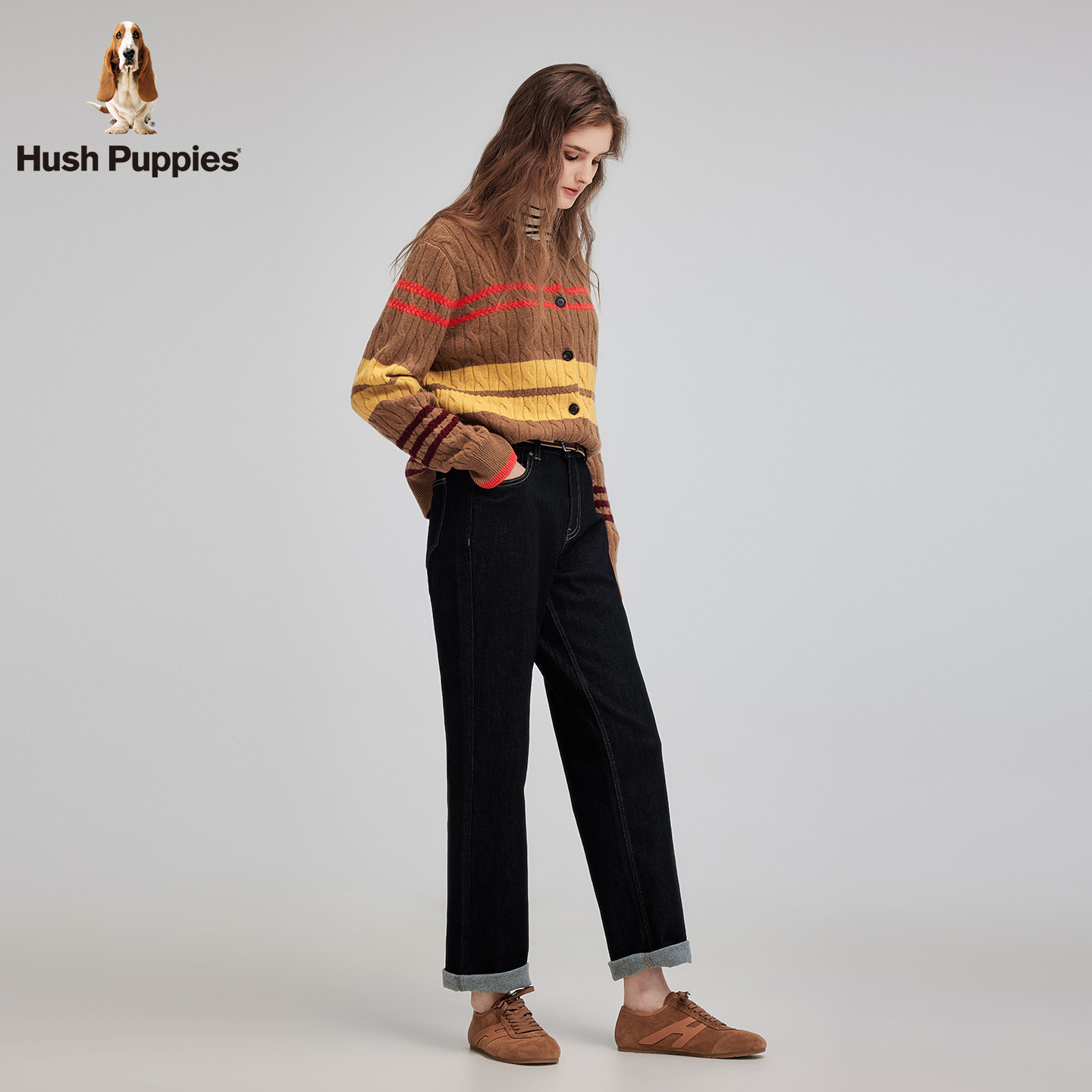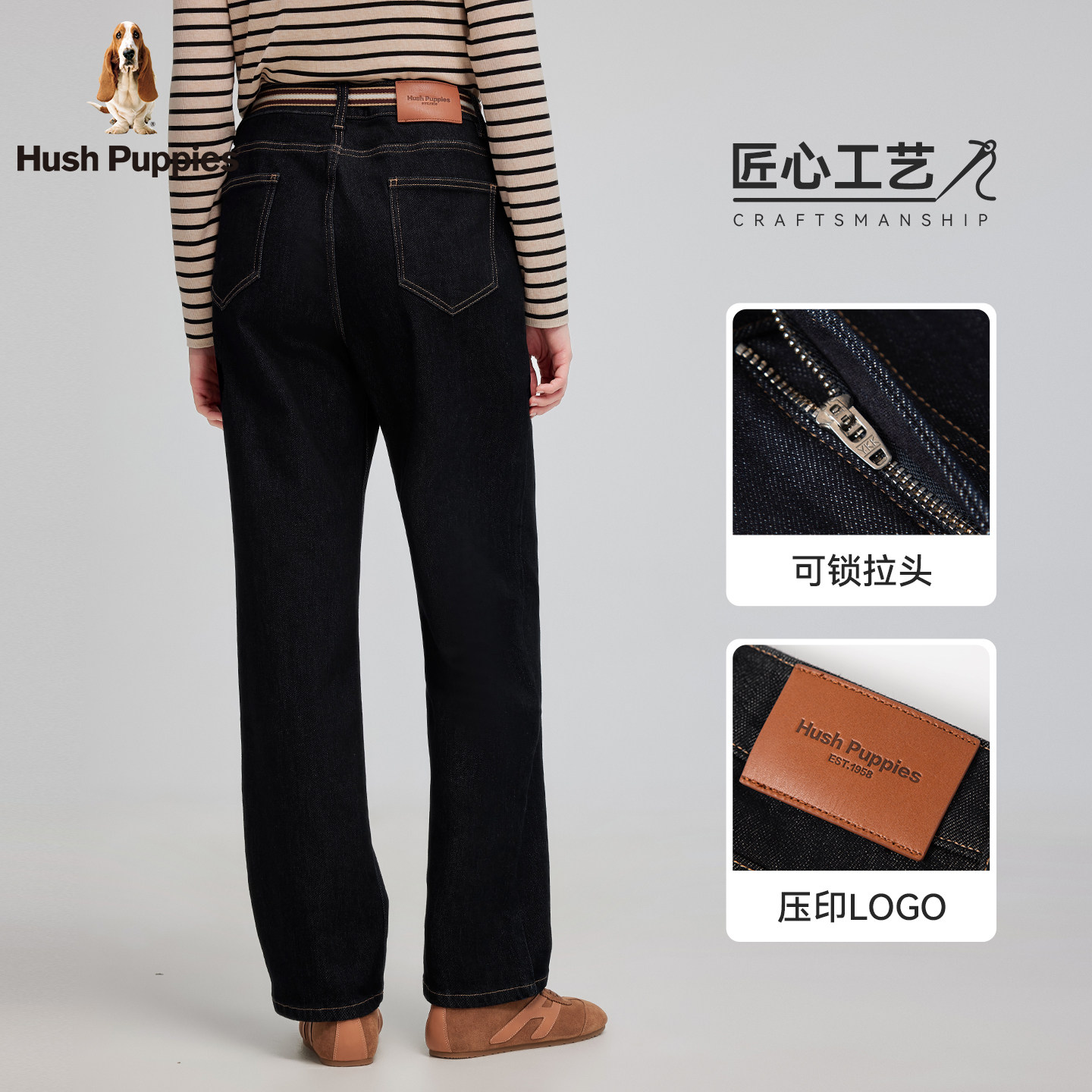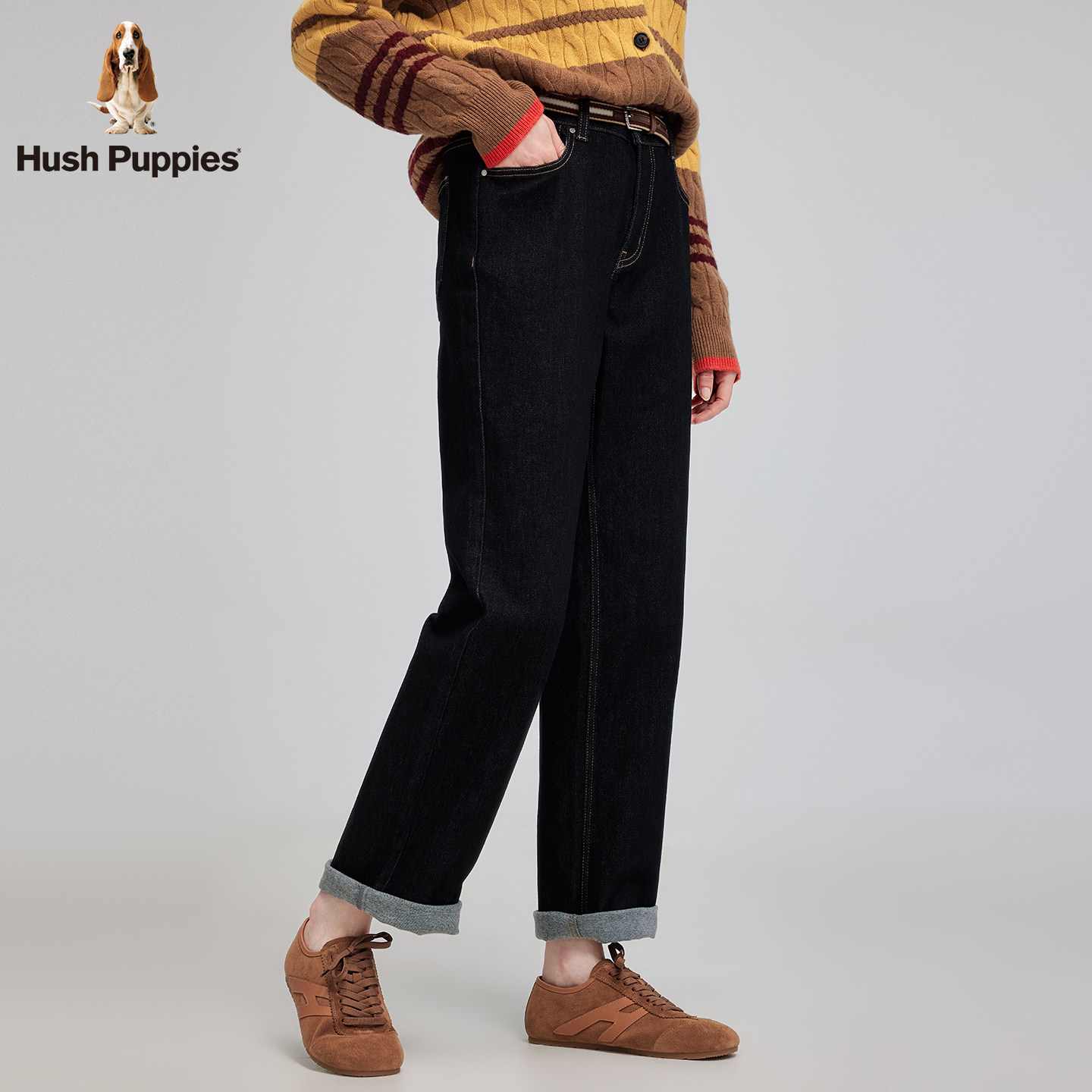 【内里加绒】暇步士女装2025冬季新款微弹挺括经典原色直筒牛仔裤