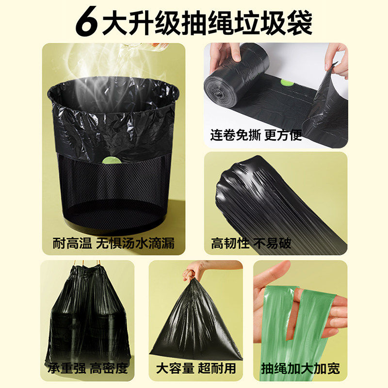 青崎可降解拉抽绳垃圾袋家用加厚手提式厨房环保免撕自动收口大号