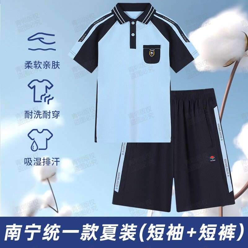 广西南宁市校服中小学生夏季男女运动服套装初中短袖上衣短裤长裤