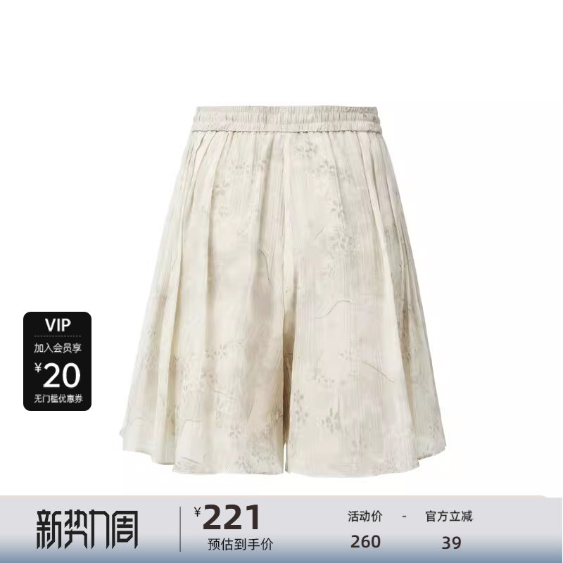 sdeer圣迪奥女装田园风套装松紧印花A字短裤S24280915
