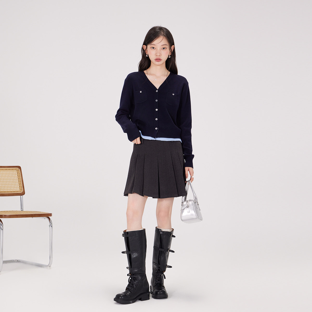 【所有女生的衣橱直播间】极尔斯 斜纹半身裙/高领T恤