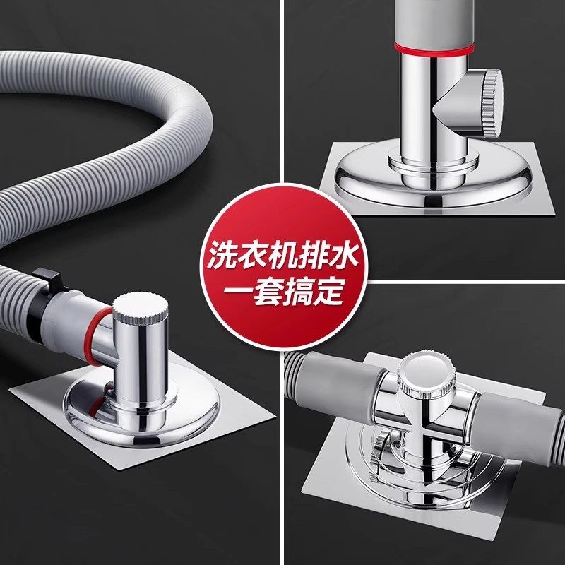 洗衣机地漏专用接头下水排水管道防反溢水二合一三通方形地漏盖子