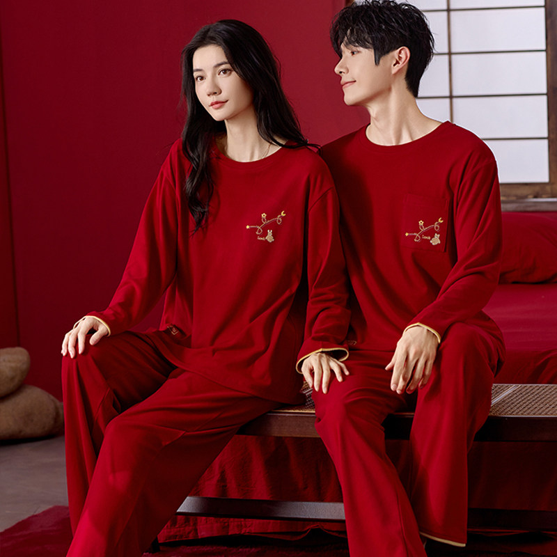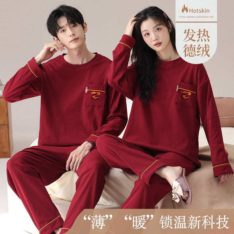 冬季德绒情侣睡衣女款结婚新婚红色男士薄绒磨毛秋冬款家居服套装