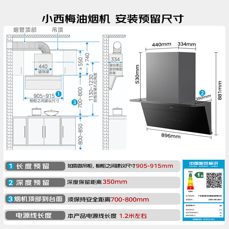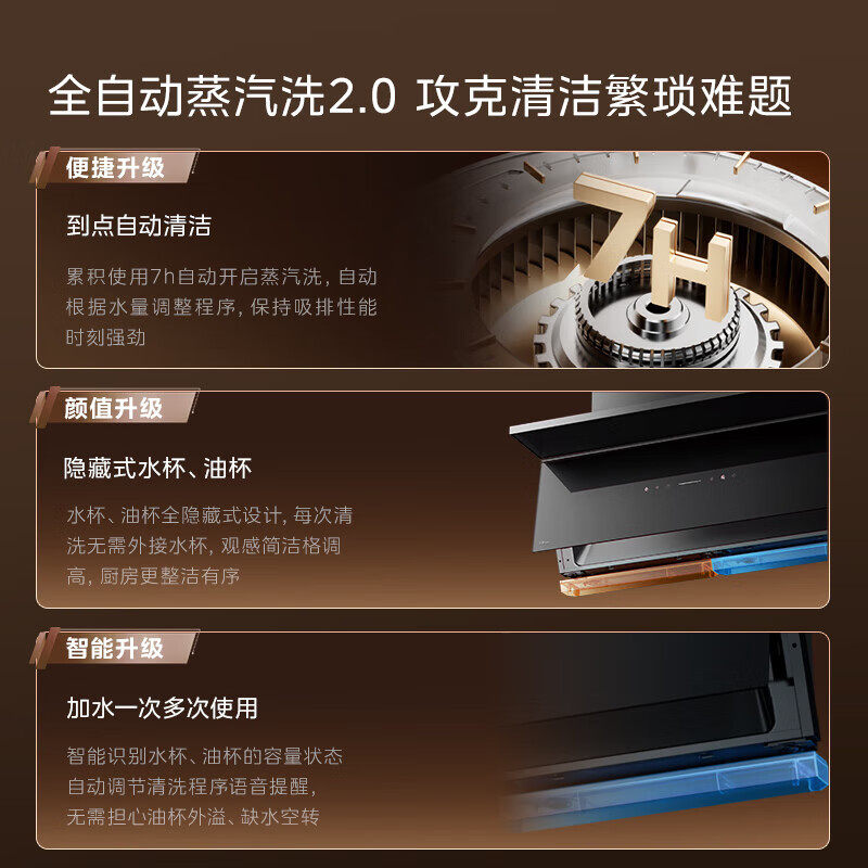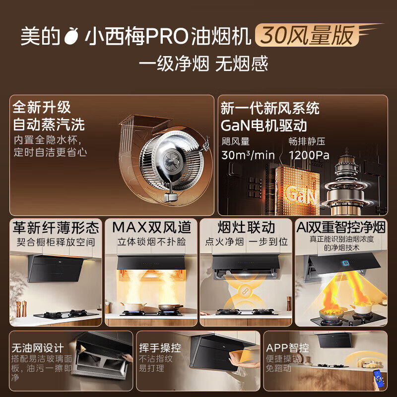 美的小西梅油烟机家用厨房顶侧一体超薄大吸力自动蒸汽洗套装AK11