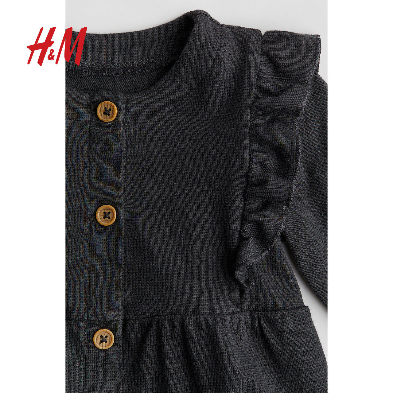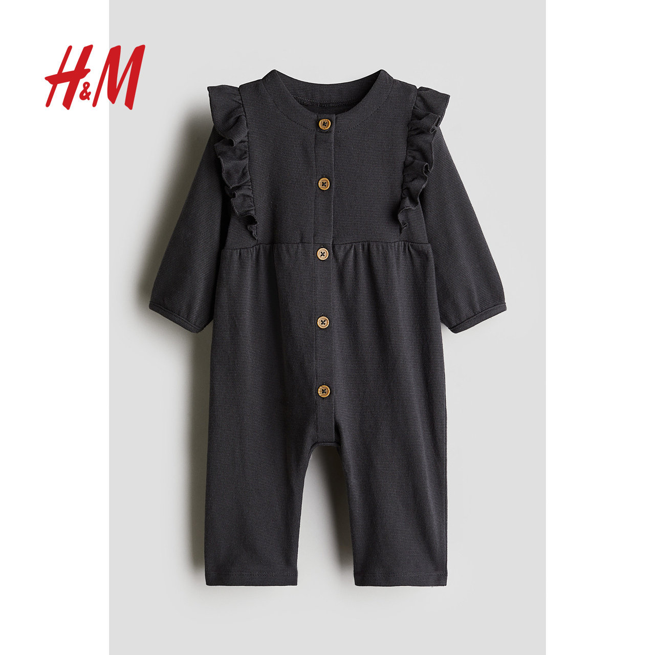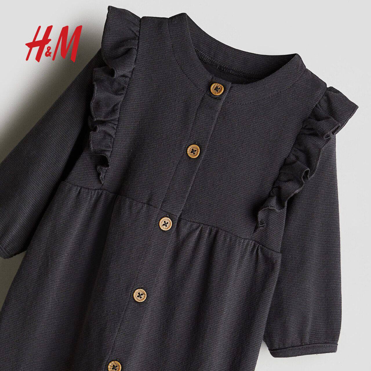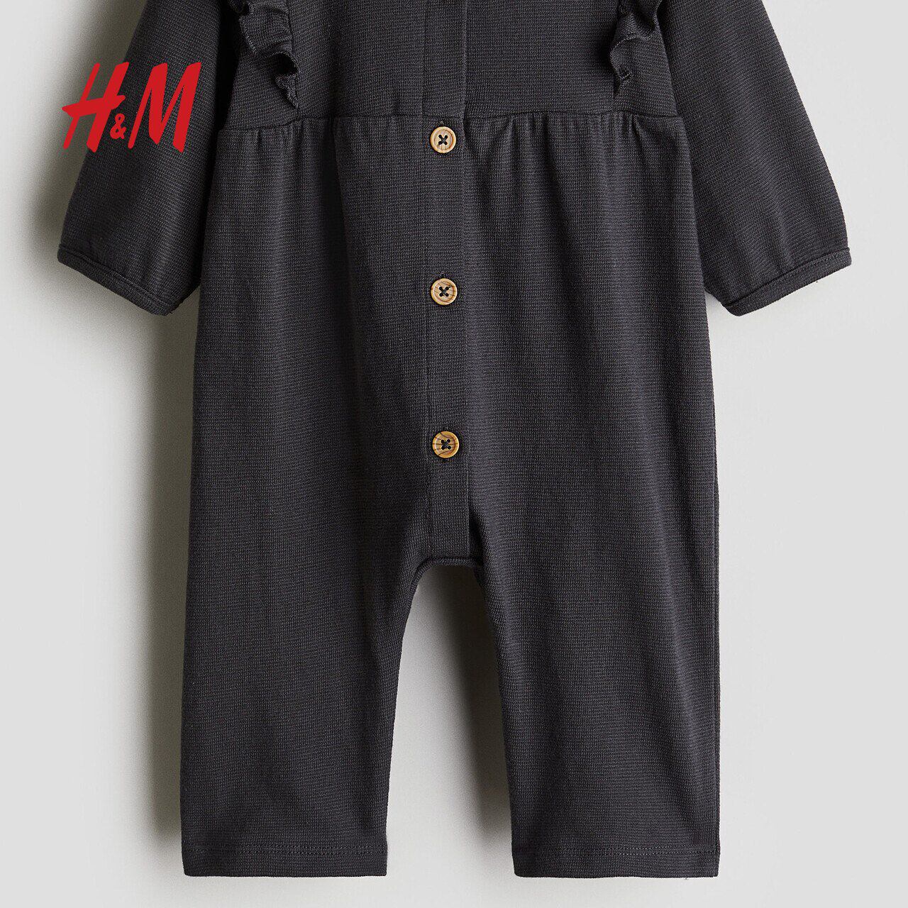 HM童装女婴裤子春季薄款婴儿柔软纹理感棉质汗布连体衣1254690