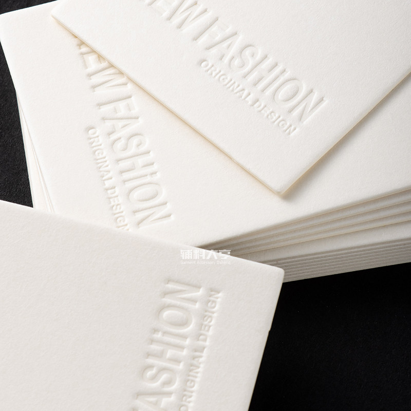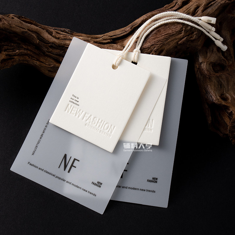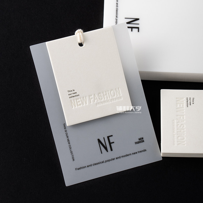 简约文艺米白卡压凹吊牌定制LOGO高级感挂牌标签价格牌商标订做