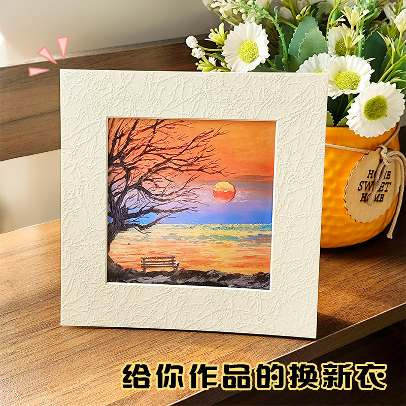 浮雕卡纸保存相框油画作品立体照片摆台正方形装裱画框双面画面