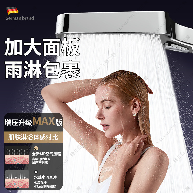德国品牌超强增压浴室洗澡淋雨加压方形花洒