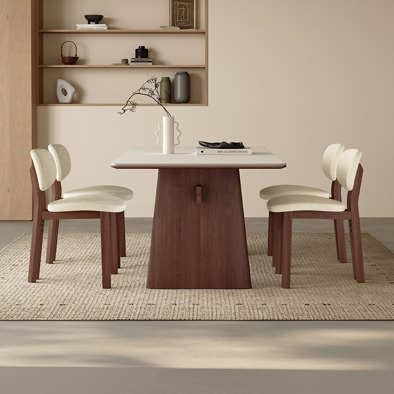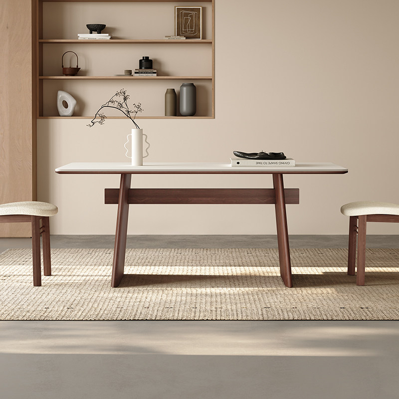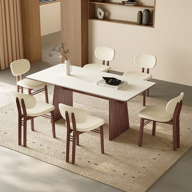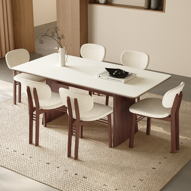 中古风实木餐桌长方形家用现代简约胡桃色北欧侘寂风纯白岩板餐桌