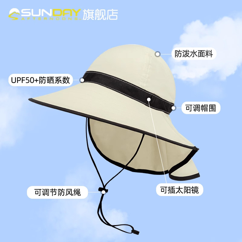 SundayAfternoons女士户外大檐护颈海边沙滩透气夏季遮阳防晒帽