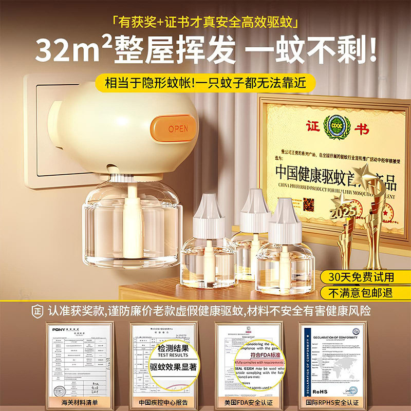 电蚊香液驱蚊液基孔肯雅热驱蚊器无烟无味智能定时灭蚊神器3瓶1器