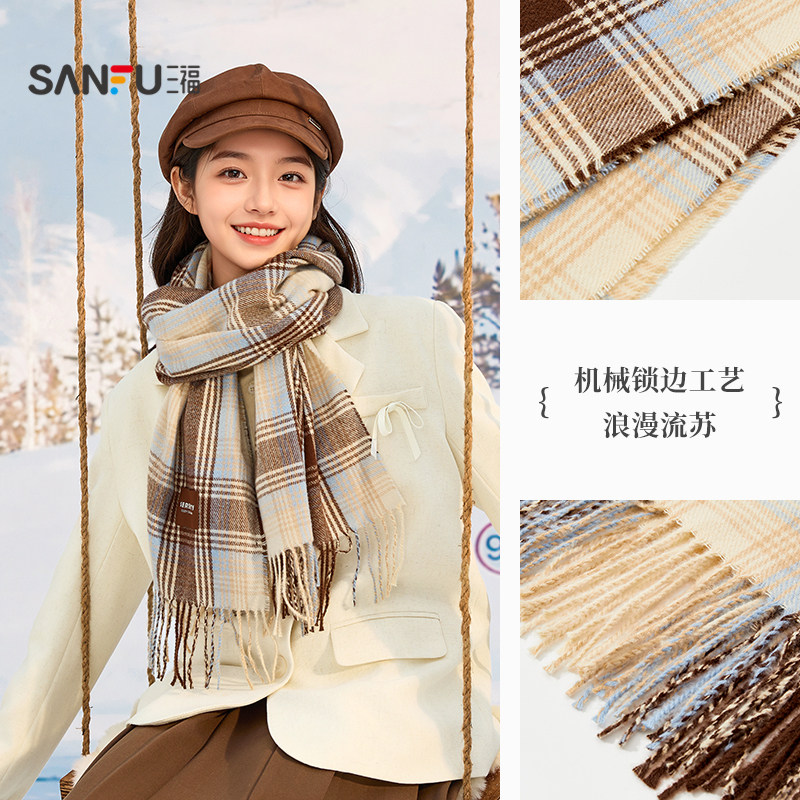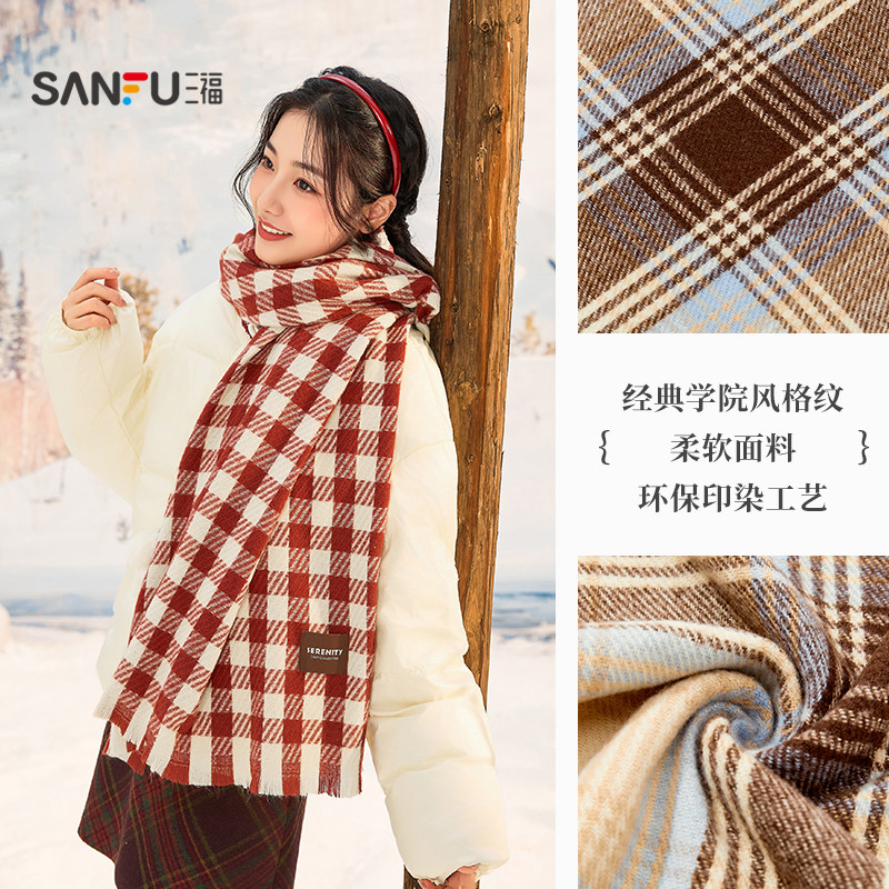 三福格子围巾韩系高级感保暖围脖披肩旅游格纹围巾男女冬2025新款