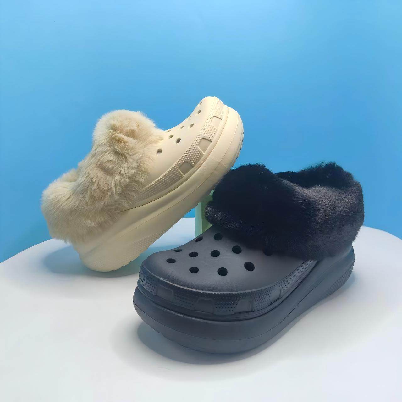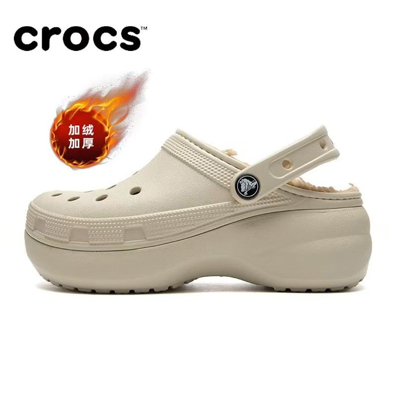 Crocss卡骆驰云朵洞洞鞋加绒泡芙云彩沙滩女厚底包头增高凉鞋鞋子