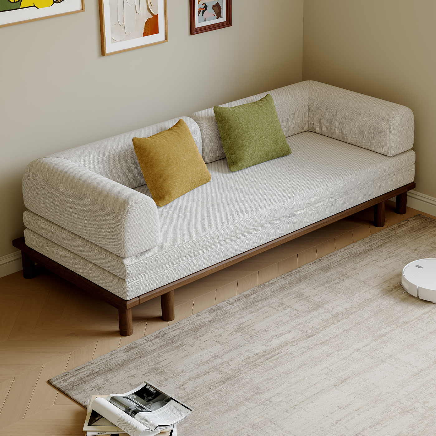 司朴实木沙发床小户型胡桃色客厅卧室原木2025新款中古风民宿酒店