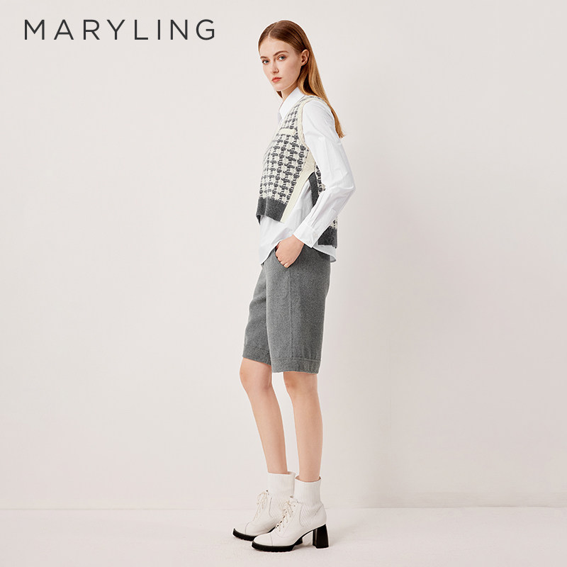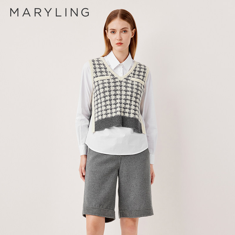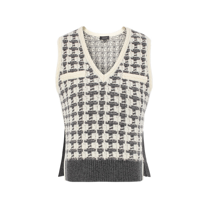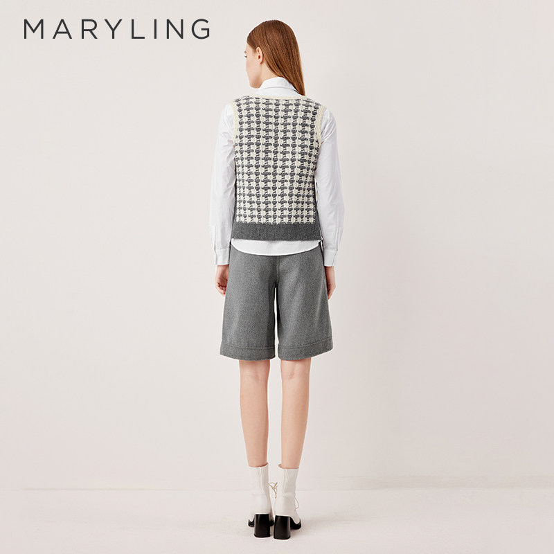 MARYLING玛俪琳2025秋季新品灰白格V领无袖针织背心A1FGW07560