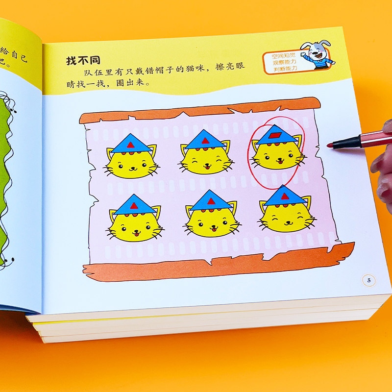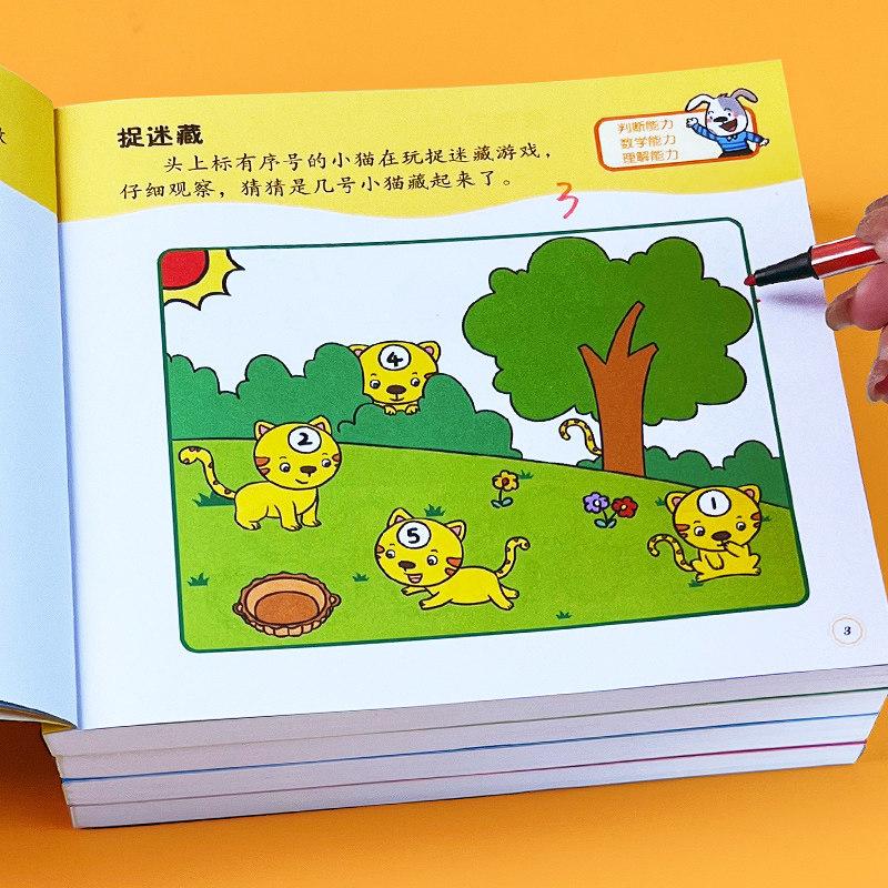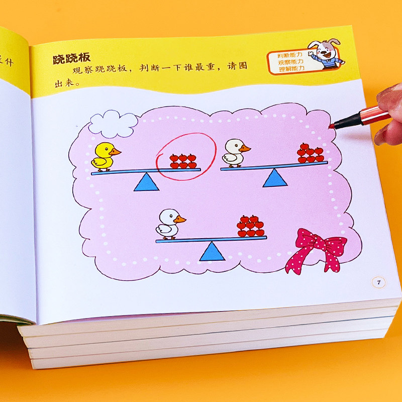 幼儿童左右脑潜能开发2-3-4-5-6岁幼儿智力开发数学思维训练题全脑开发找规律填空连线认数写字本数学作业本