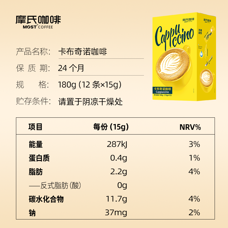 摩氏卡布奇诺速溶咖啡学生防提困神偏甜三合一咖啡粉36条装奶茶