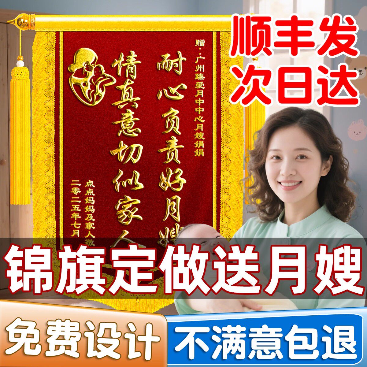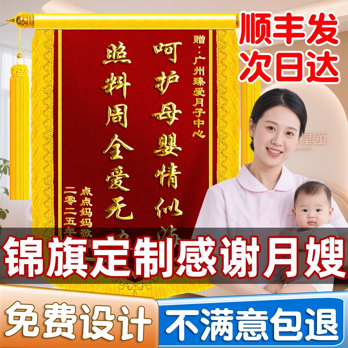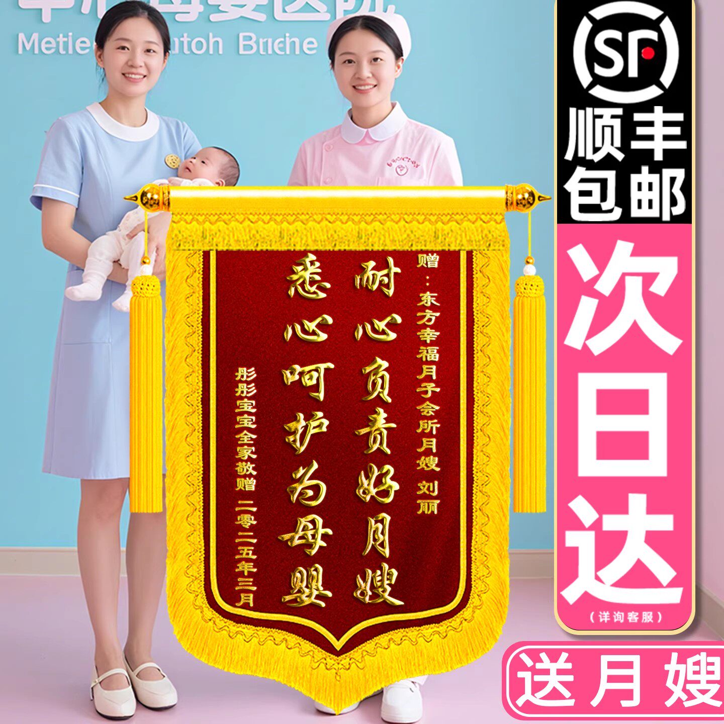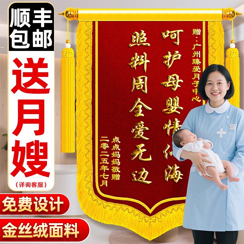 锦旗定做送月嫂送月子中心会所妇产科赠医生护士助产师育婴师感谢产后护理修复服务母婴护理表彰高档旌旗定制