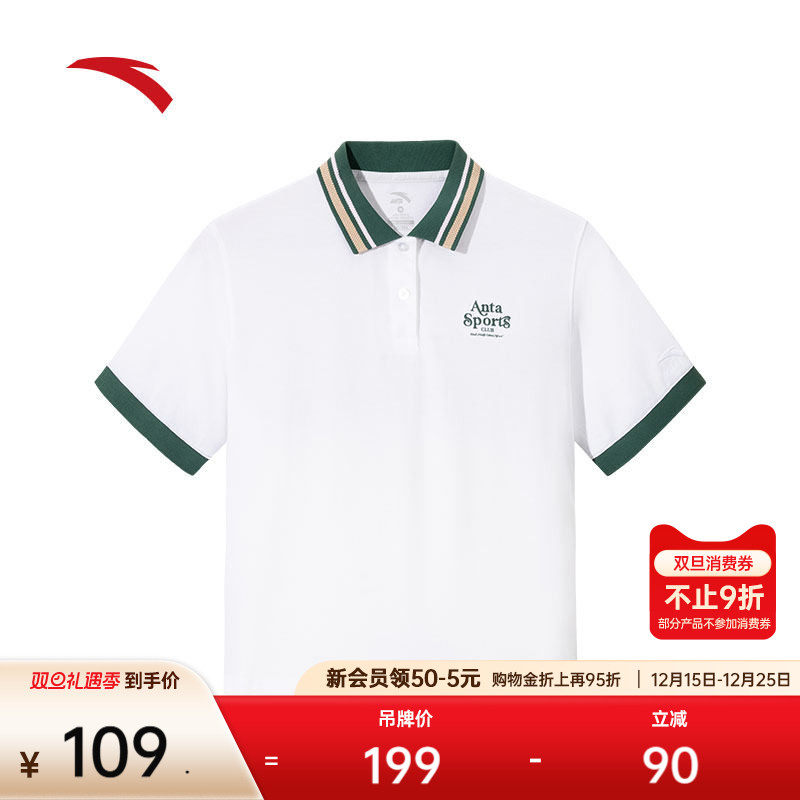 安踏学院风短袖polo衫女款夏季撞色翻领t恤休闲运动上衣162528157