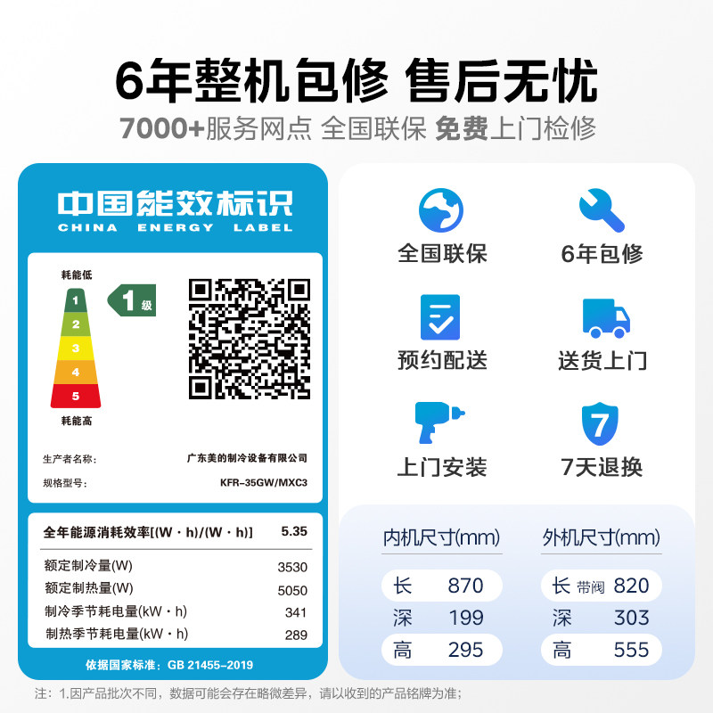 美的空调酷省电二代大1.5匹1P新一级能效变频省电挂机官方旗舰店