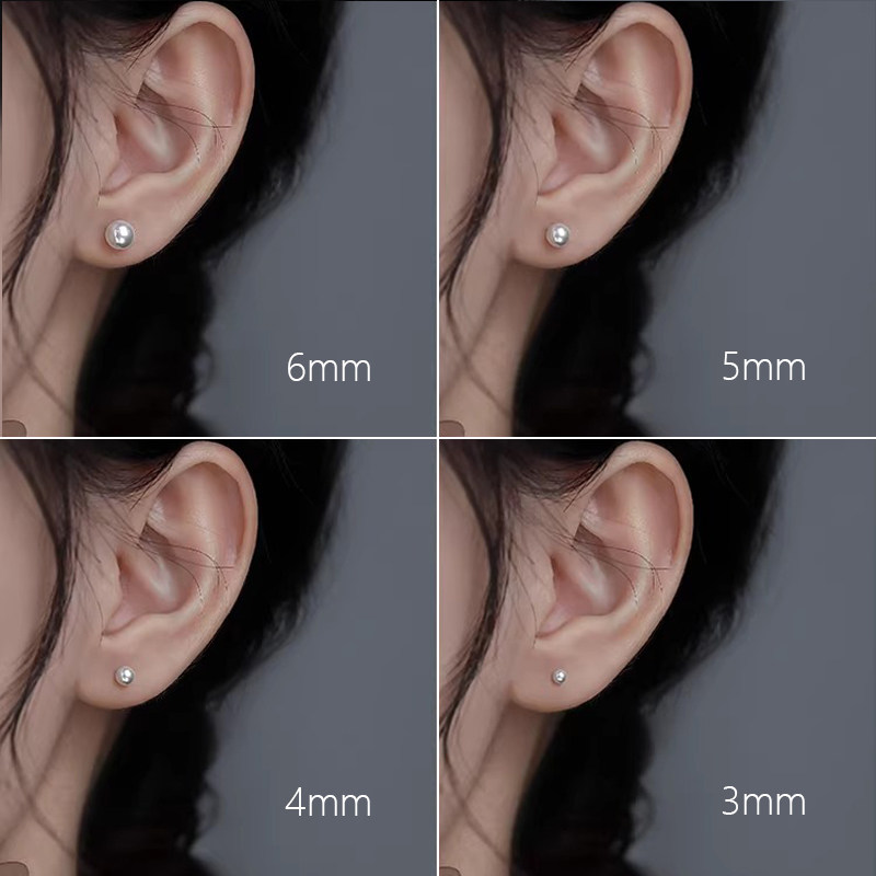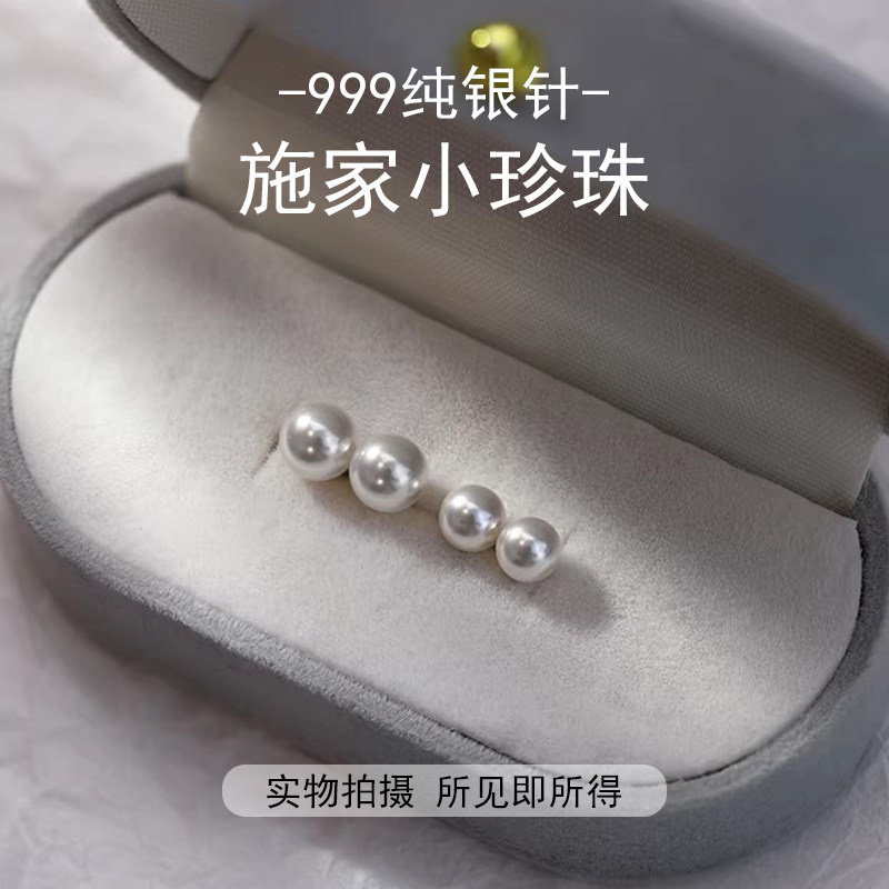 耳钉S999纯银施家迷你小珍珠耳骨钉小米珠养耳洞睡觉免摘耳饰足银