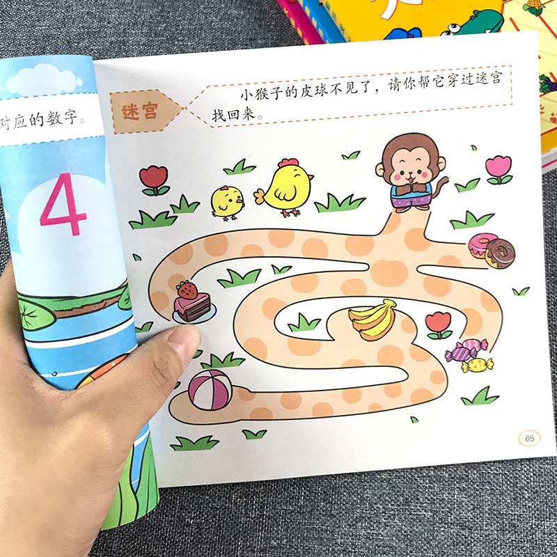 幼儿童左右脑潜能开发2-3-4-5-6岁幼儿智力开发数学思维训练题全脑开发找规律填空连线认数写字本数学作业本
