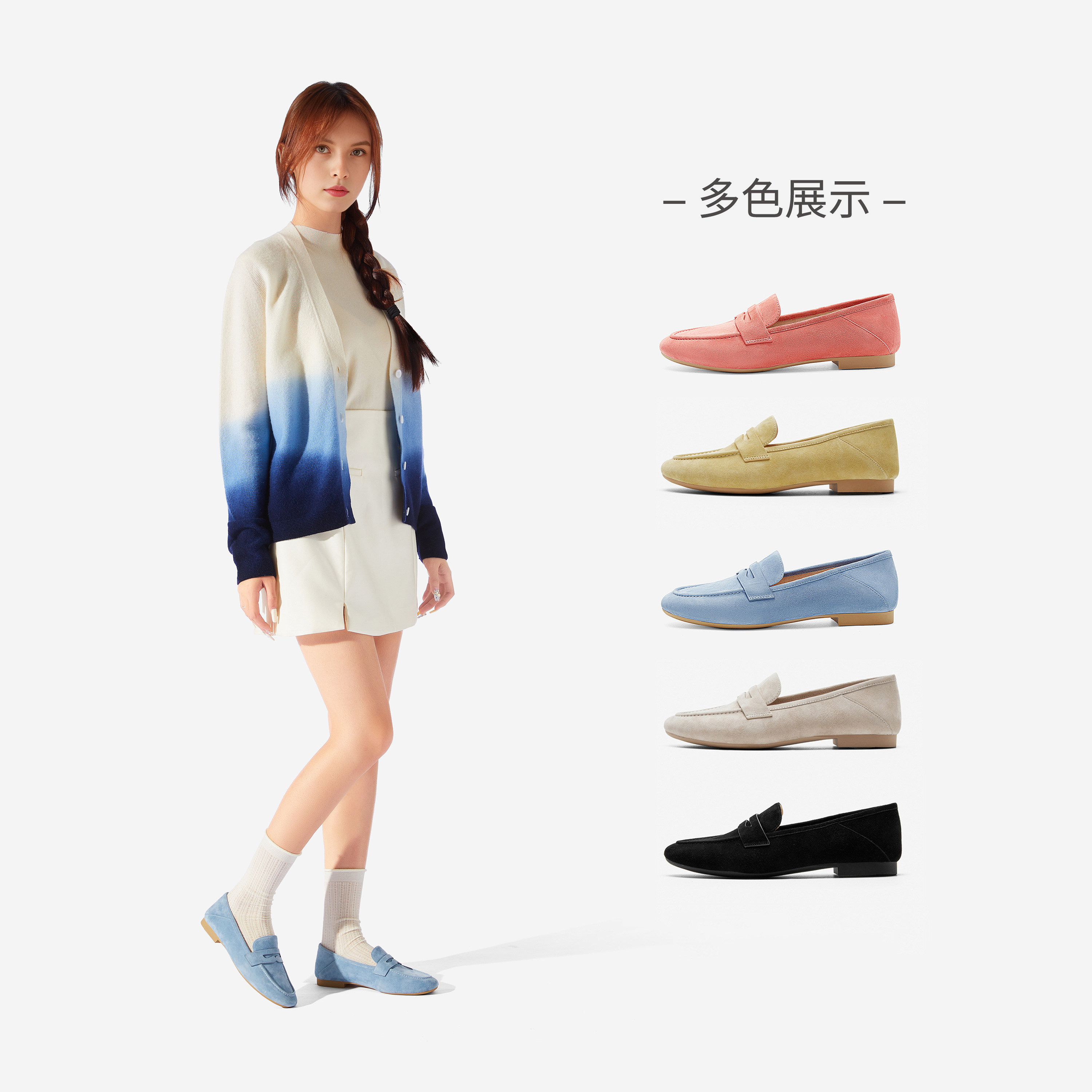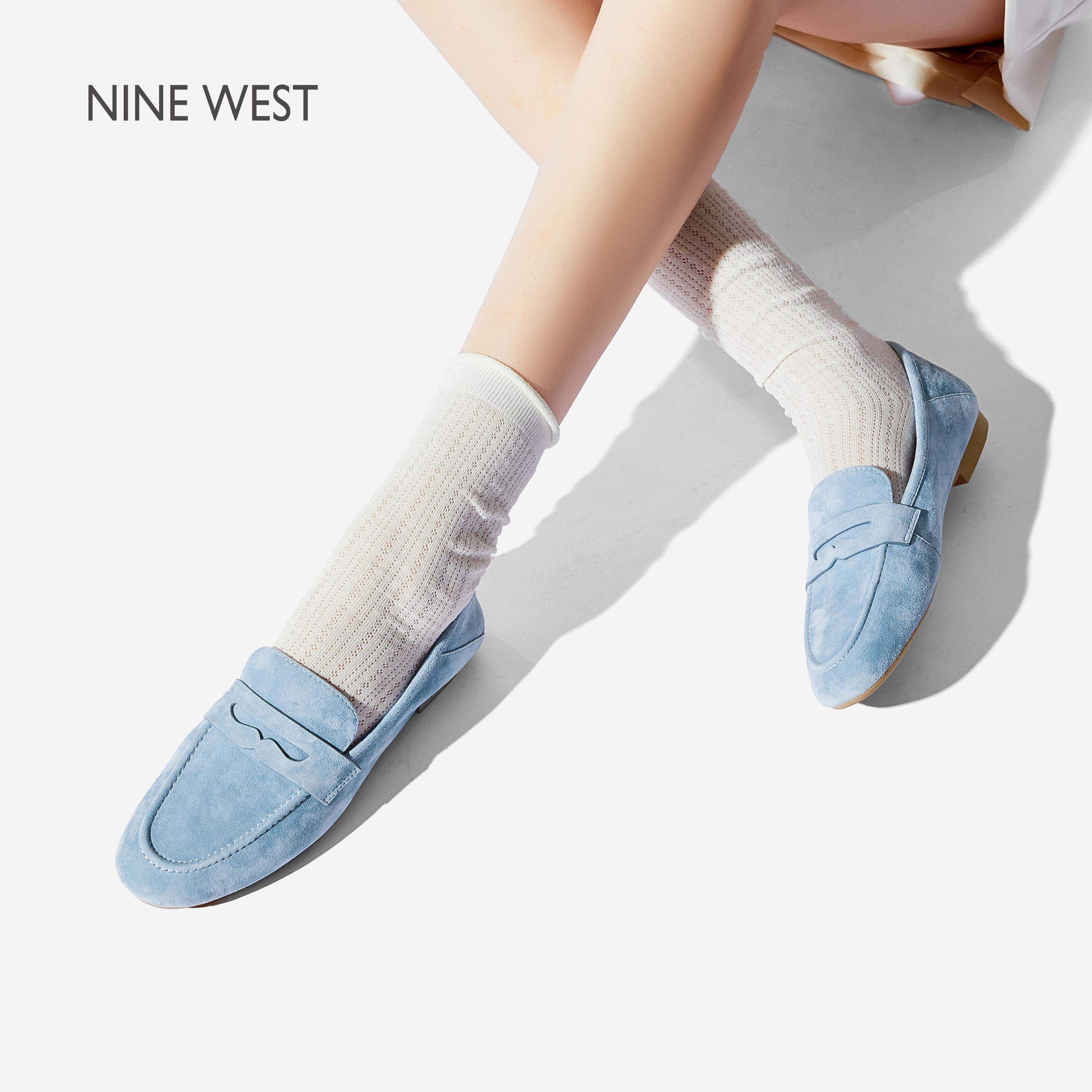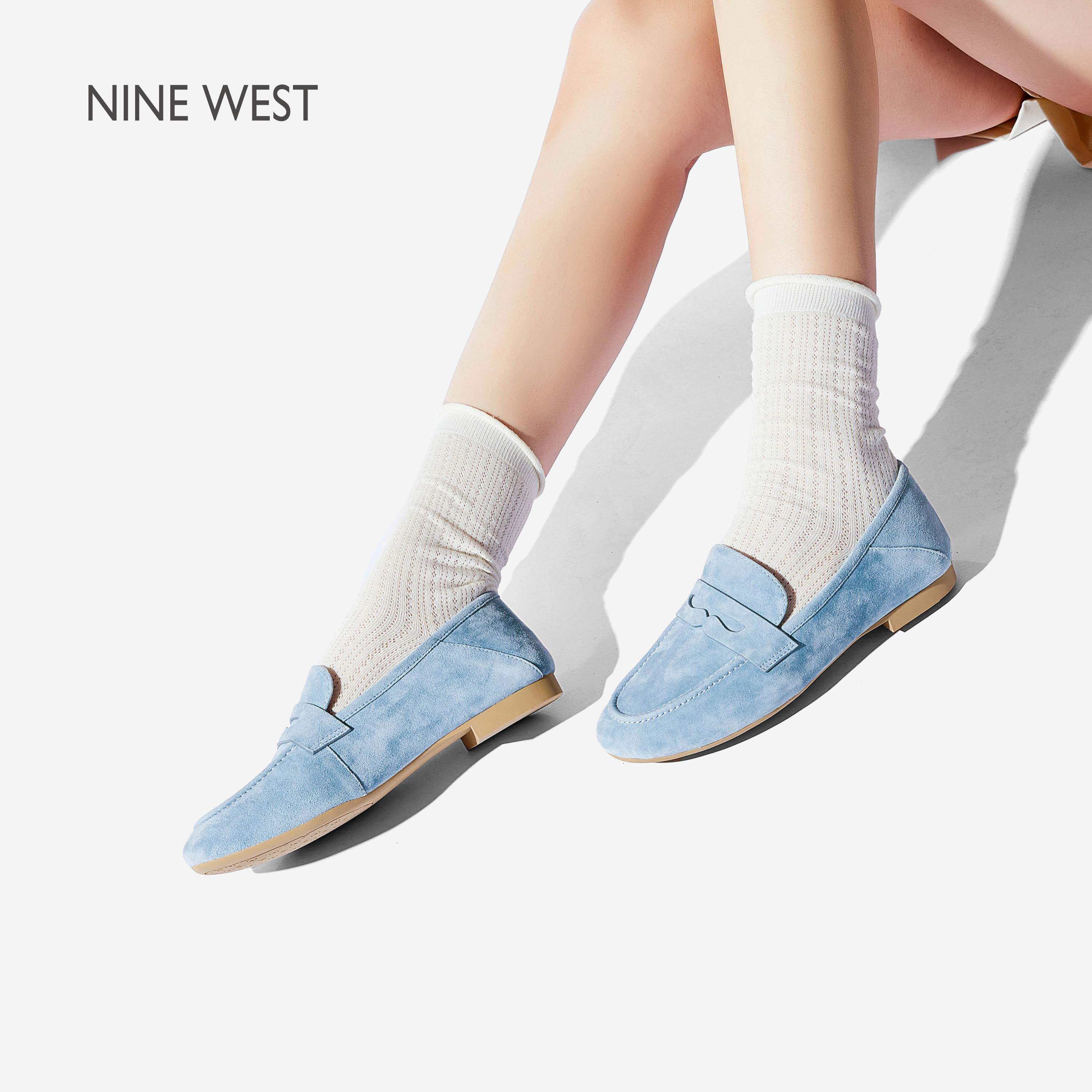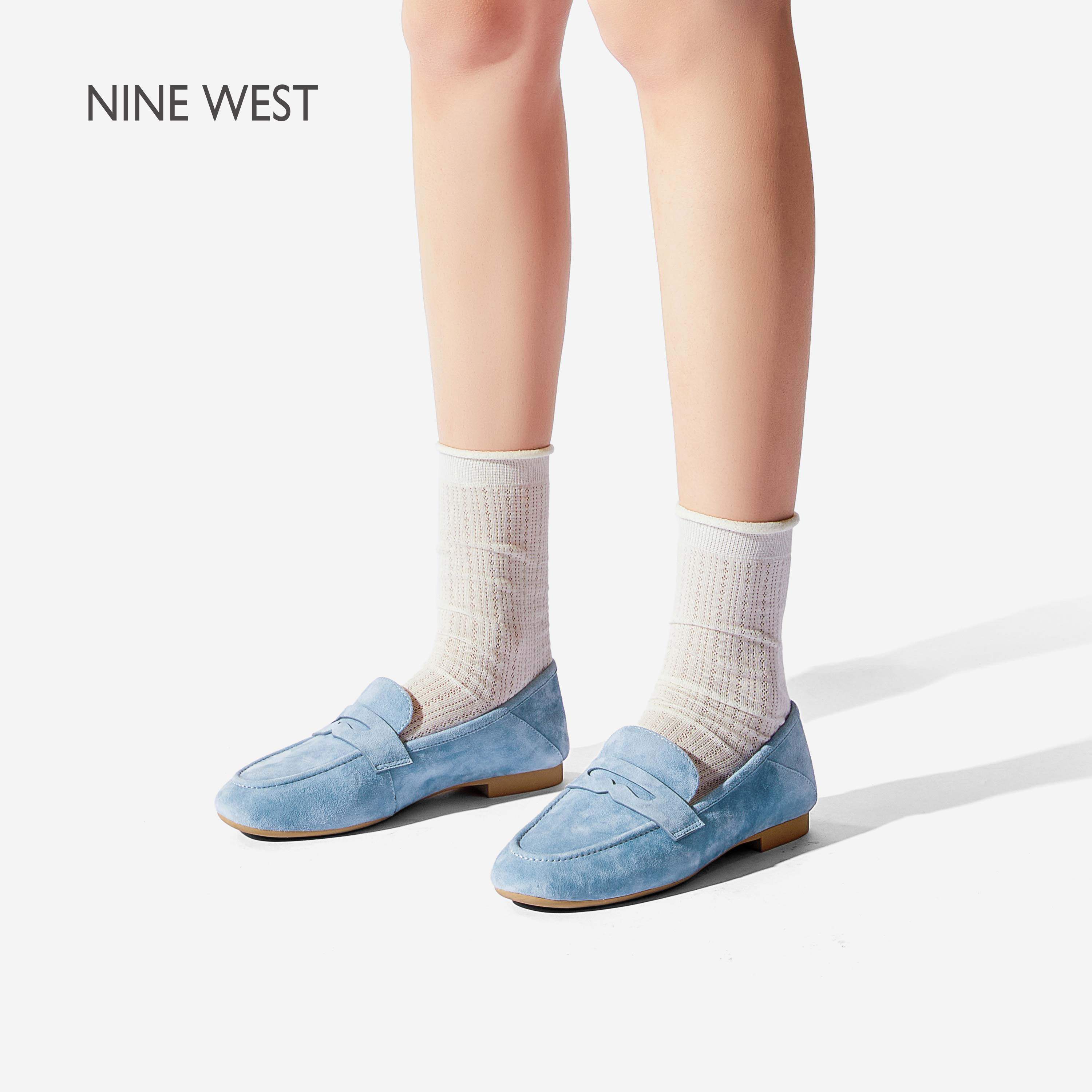 Nine West/玖熙平底乐福鞋女年秋冬季新款一脚蹬圆头绒面软底