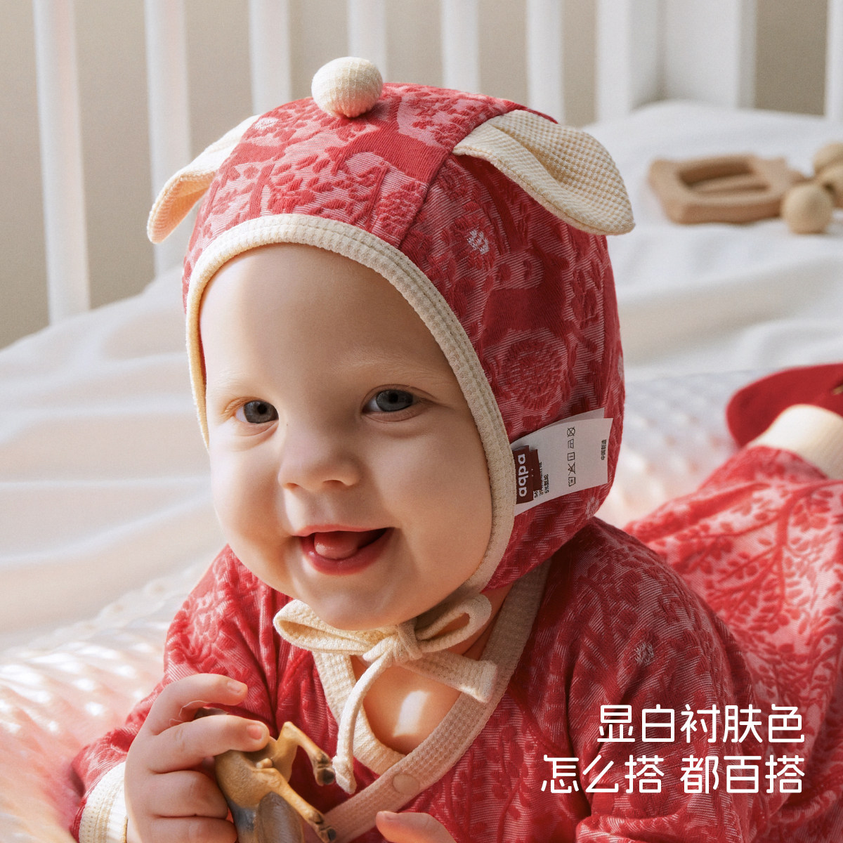 aqpa爱帕婴儿帽子春秋新款提花浮雕宝宝胎帽小月龄系带帽可爱外出