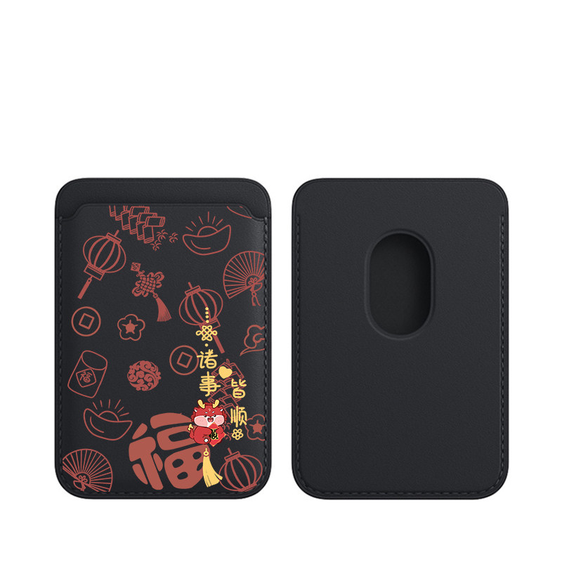 2024新年款苹果magSafe磁吸卡包红色适用于iphone15promax皮革15卡套式14pro真皮质卡夹钱包配件插卡槽门禁