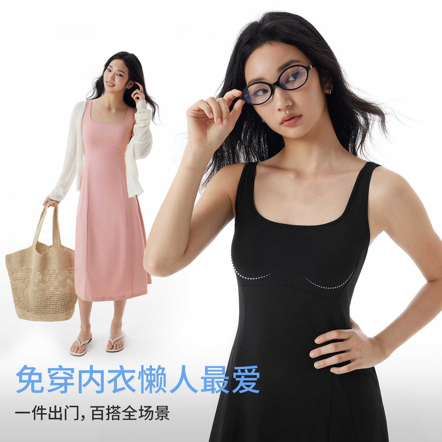 自带胸垫 方领显气质 长裙遮肉显瘦