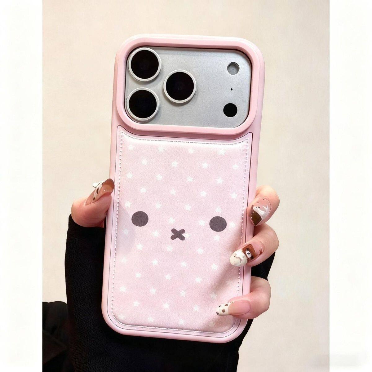 粉色米菲星星适用苹果17Pro皮纹壳iPhone16Promax手机壳15plus/14/13/12pro大孔鼓包新款XS/XR软壳