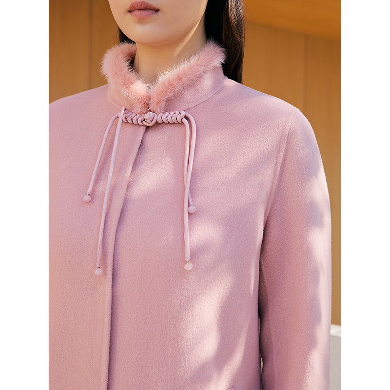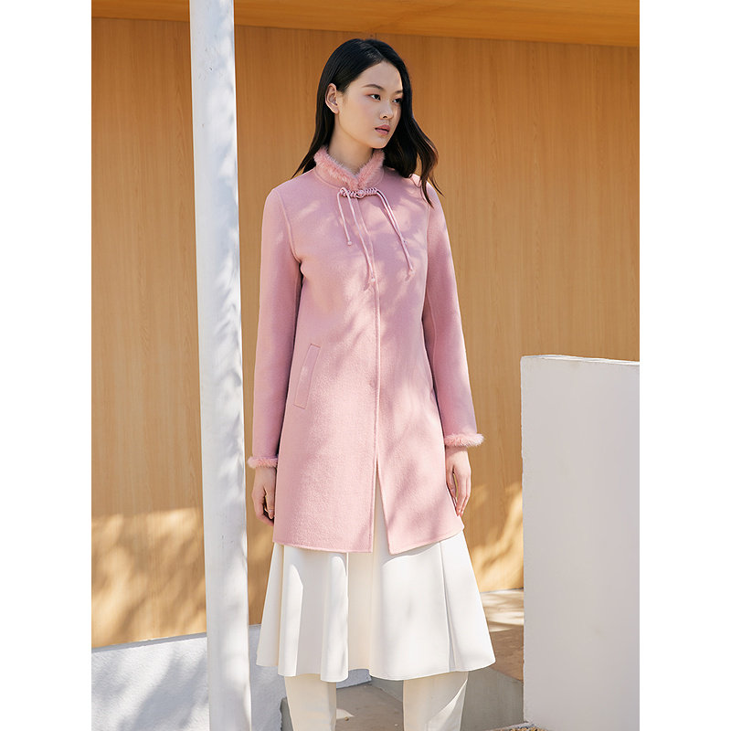 YINER音儿专选2025冬季新款中式盘扣立领羊毛羊绒混纺双面呢大衣