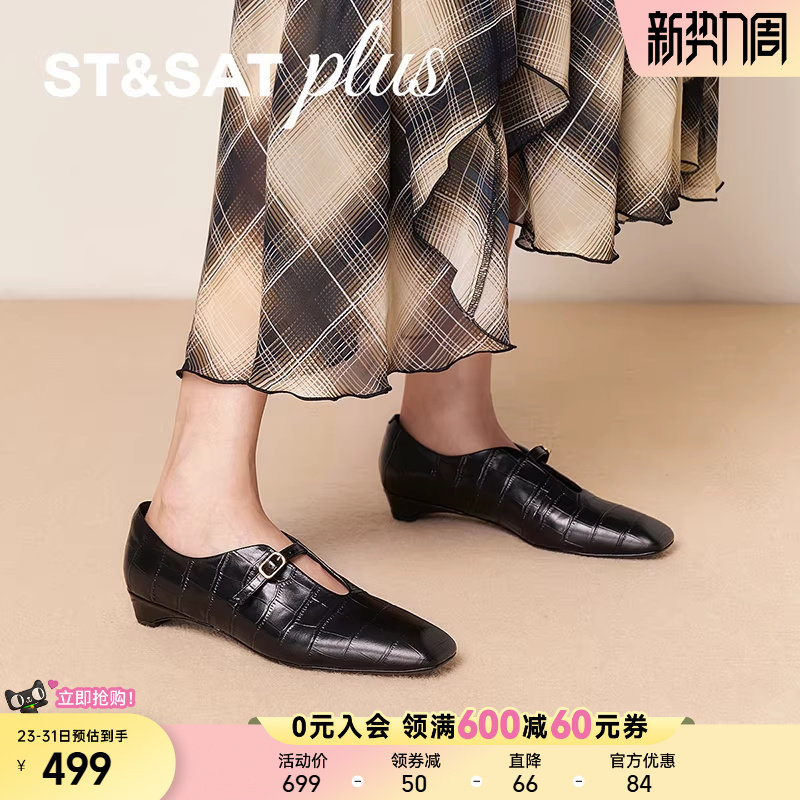 星期六法式尖头2025秋季时尚新款一字带扣浅口单鞋坡跟SSD3111090
