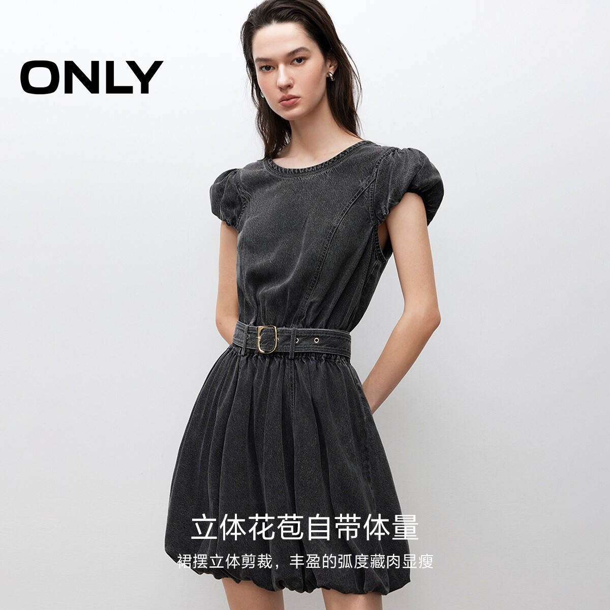 【ONLY奥莱】春夏莱赛尔柔软舒适收腰立体花苞裙牛仔短裙连衣裙女