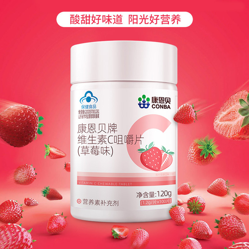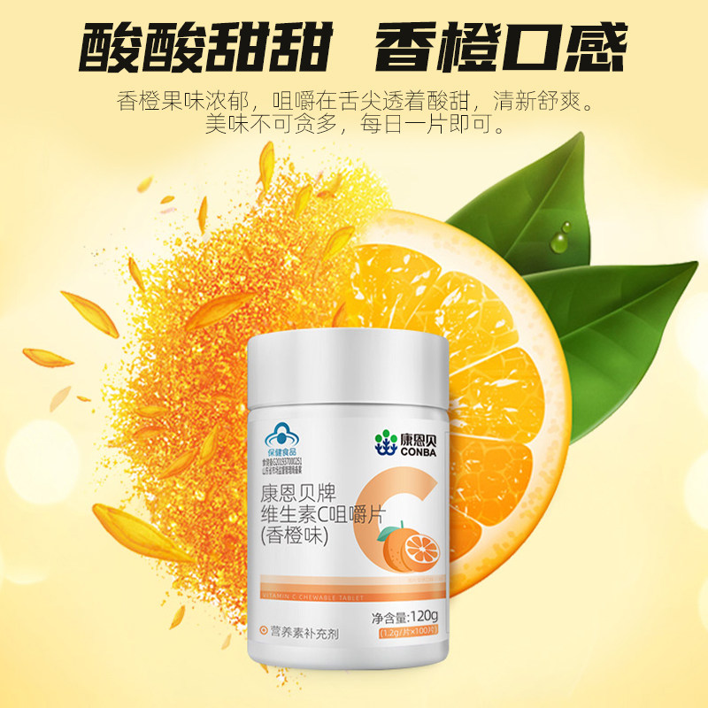 康恩贝维生素C咀嚼片100片香橙草莓柠檬味成人VC男女维C含片正品