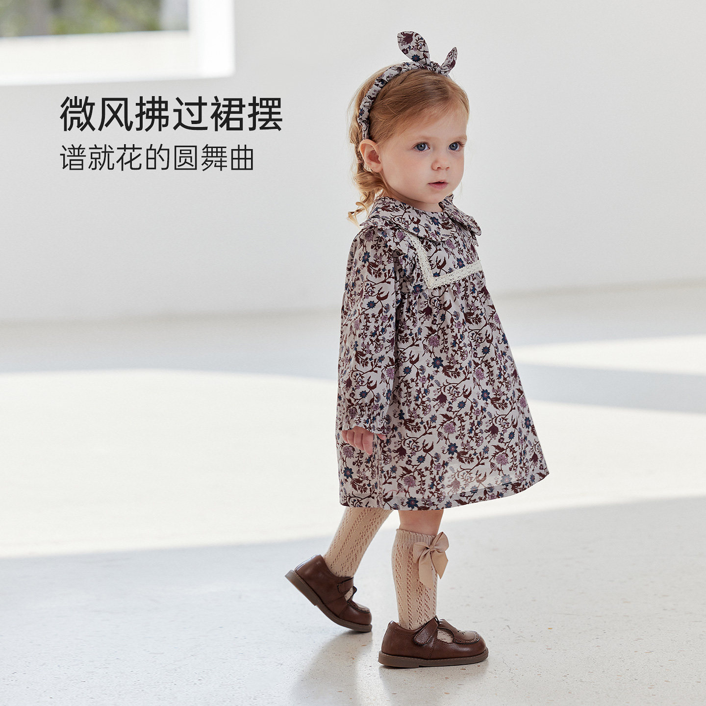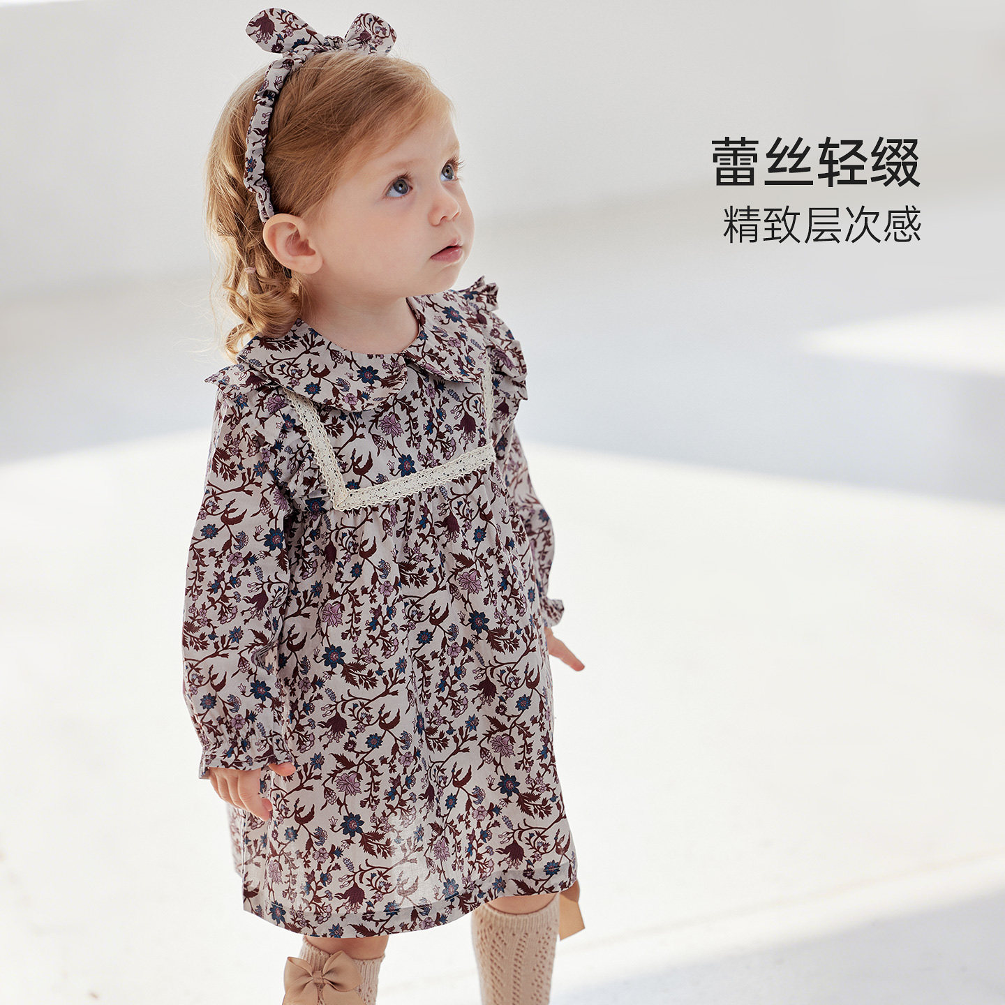 babylove女宝宝连衣裙春秋款纯棉婴幼儿复古文艺公主裙堇色花枝