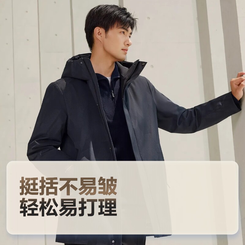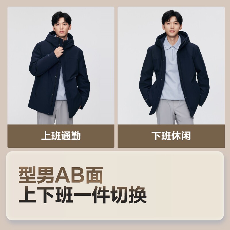 【鹅绒】波司登冬季男经典商务厚羽绒服连帽短款简约休闲保暖