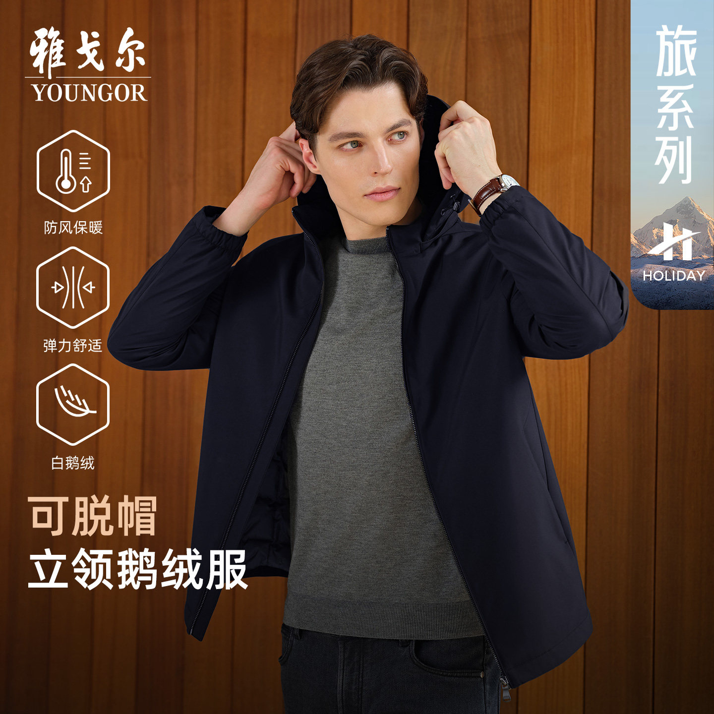 【轻暖鹅绒服】雅戈尔男士25秋冬新款行政商务休闲保暖可脱帽外套