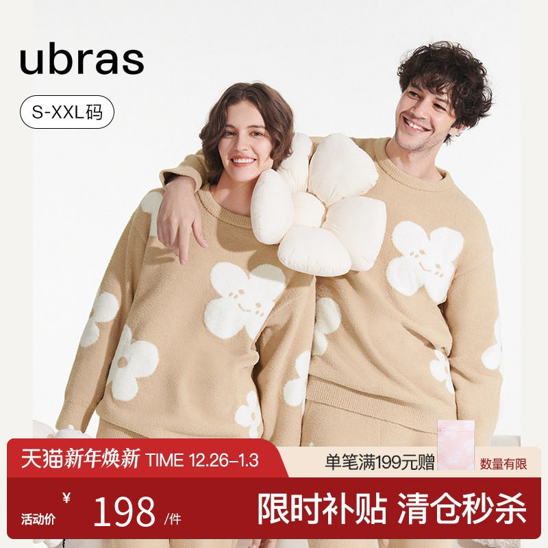 ubras有钱花家居服半边绒绵绵云情侣加厚睡衣保暖可外穿套装